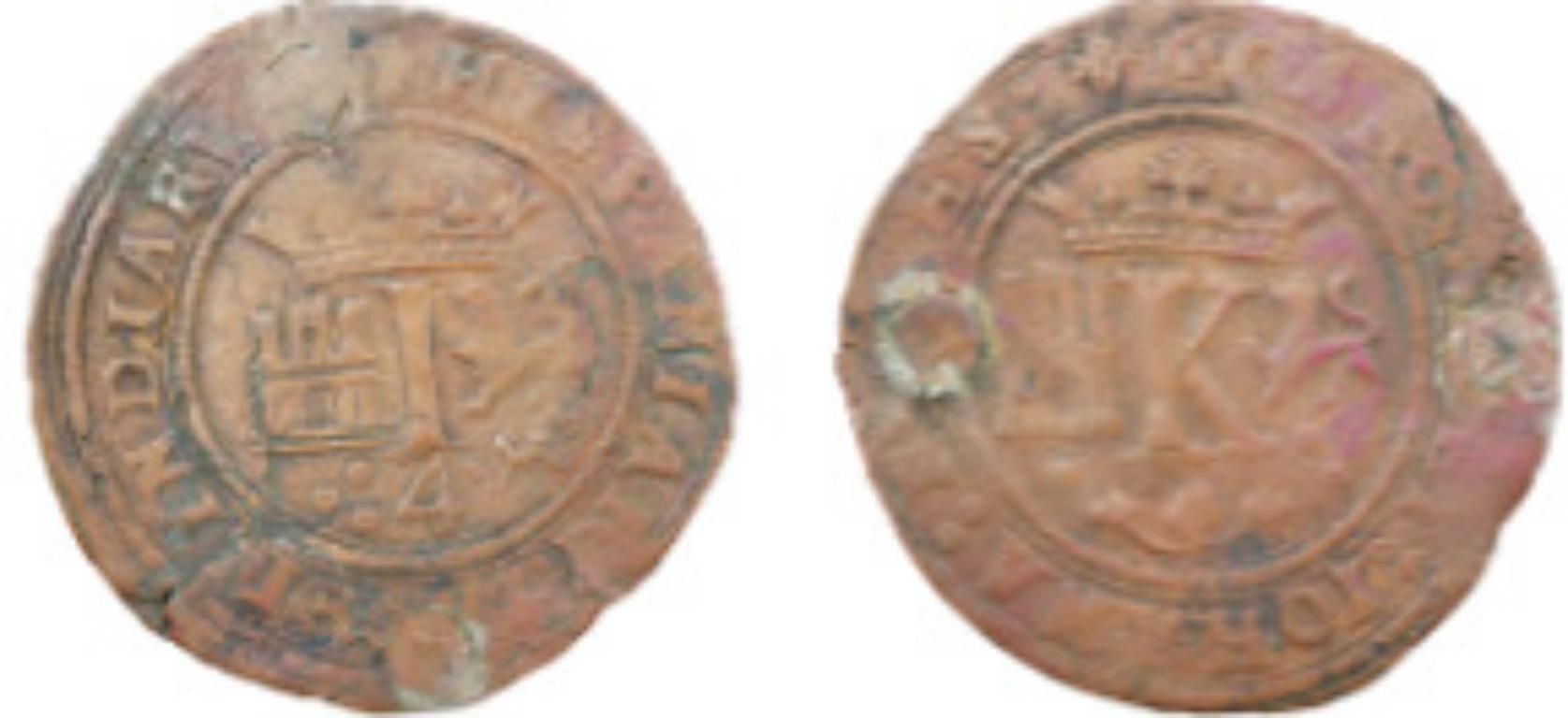 DESCRIPCIÓN ADICIONAL: variedad tres puntos antes del 4, oMo, segundo tipo “Carolus”, VF detalles reparado de perforaciones, buena troquelación