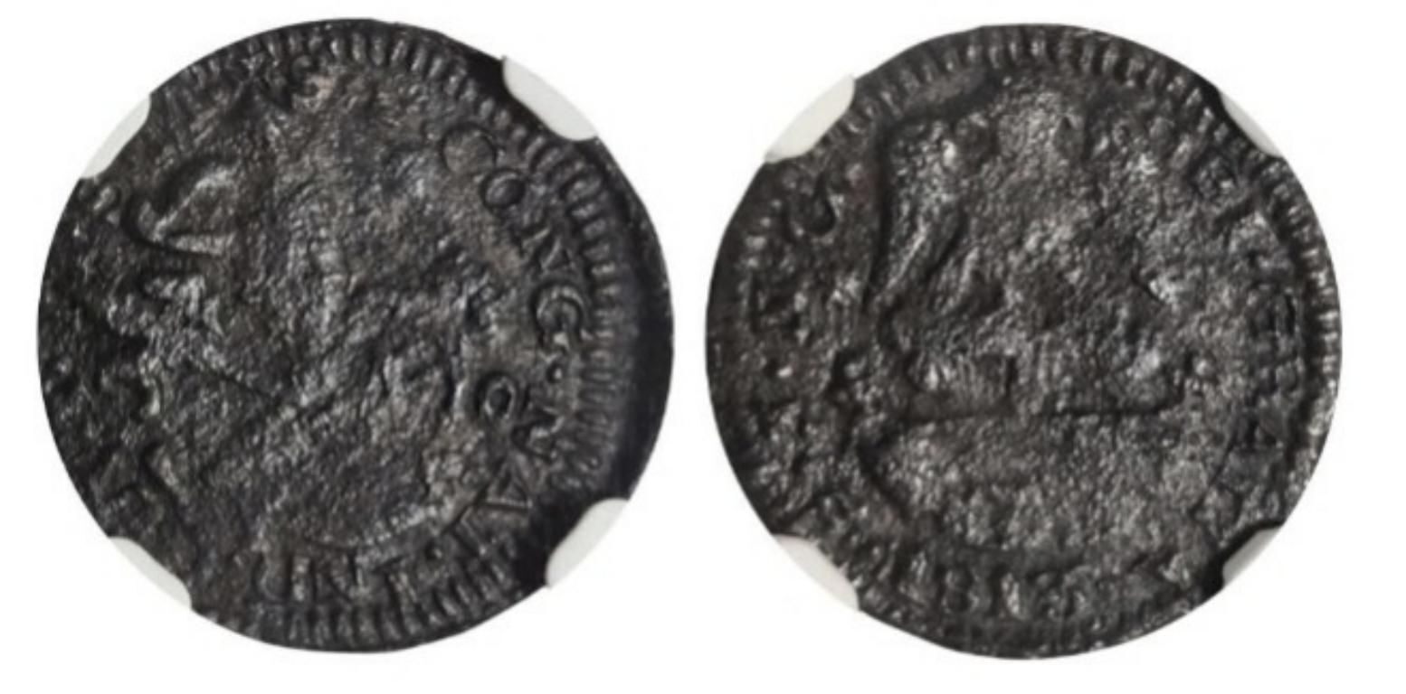 DESCRIPCIÓN ADICIONAL: daño ambiental, cobre, canto liso, variedad acuñada con troqueles de la moneda de plata del mismo tipo, con leyenda “AMERICA” en puente que no de distingue a causa de debilidad