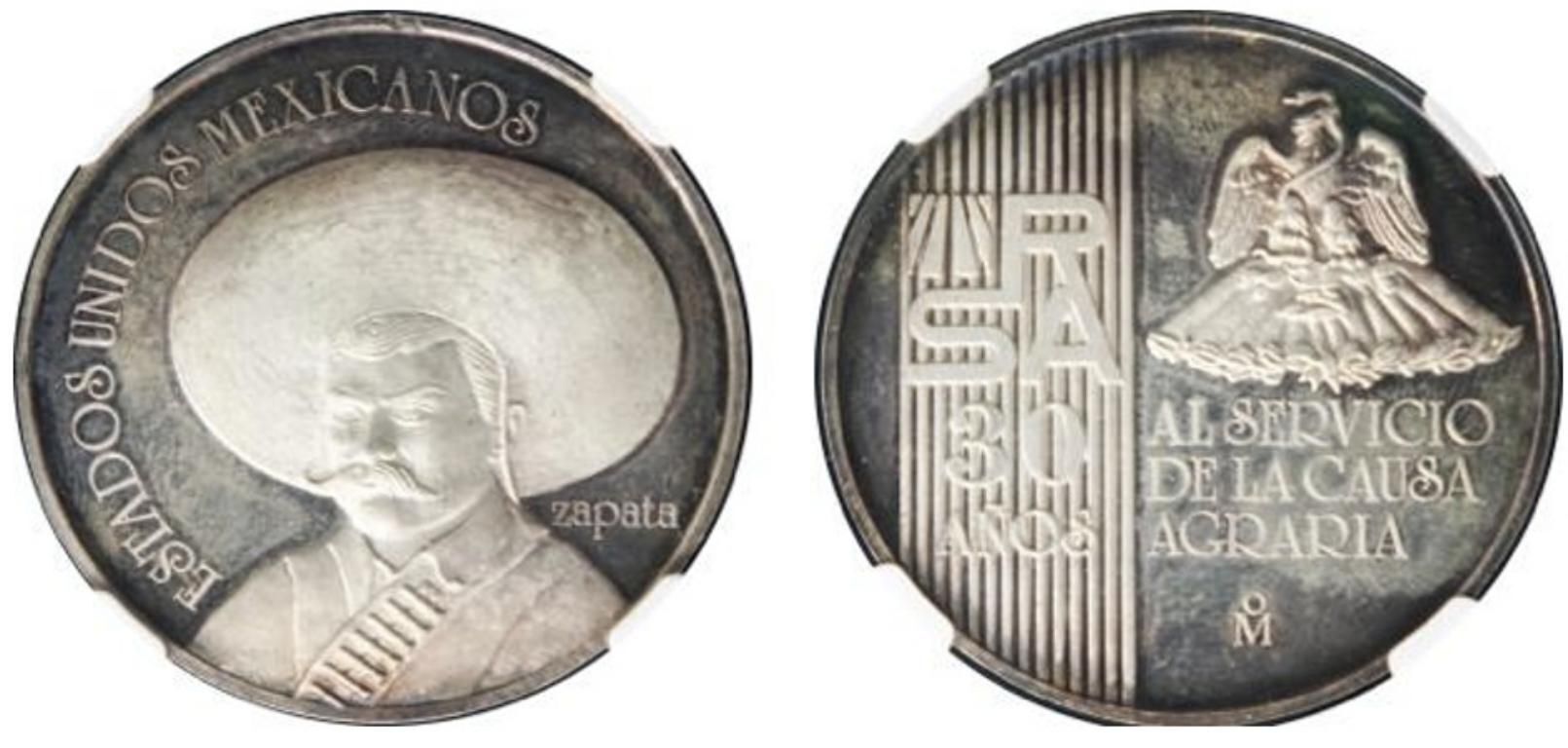 DESCRIPCIÓN ADICIONAL: 30 años de servicio, Secretaria Agraria, atractivo diseño utilizado en monedas de prueba, NGC PF-64 ULTRA CAMEO